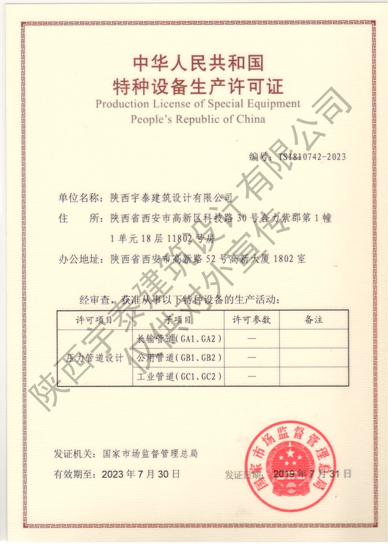 特种设备设计许可证(压力管道)